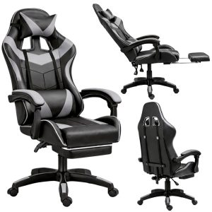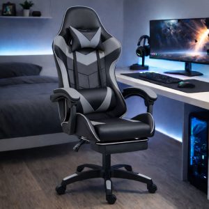 Igralni stol LEAN črno-siva – ergonomski gaming stol z naslonom za noge